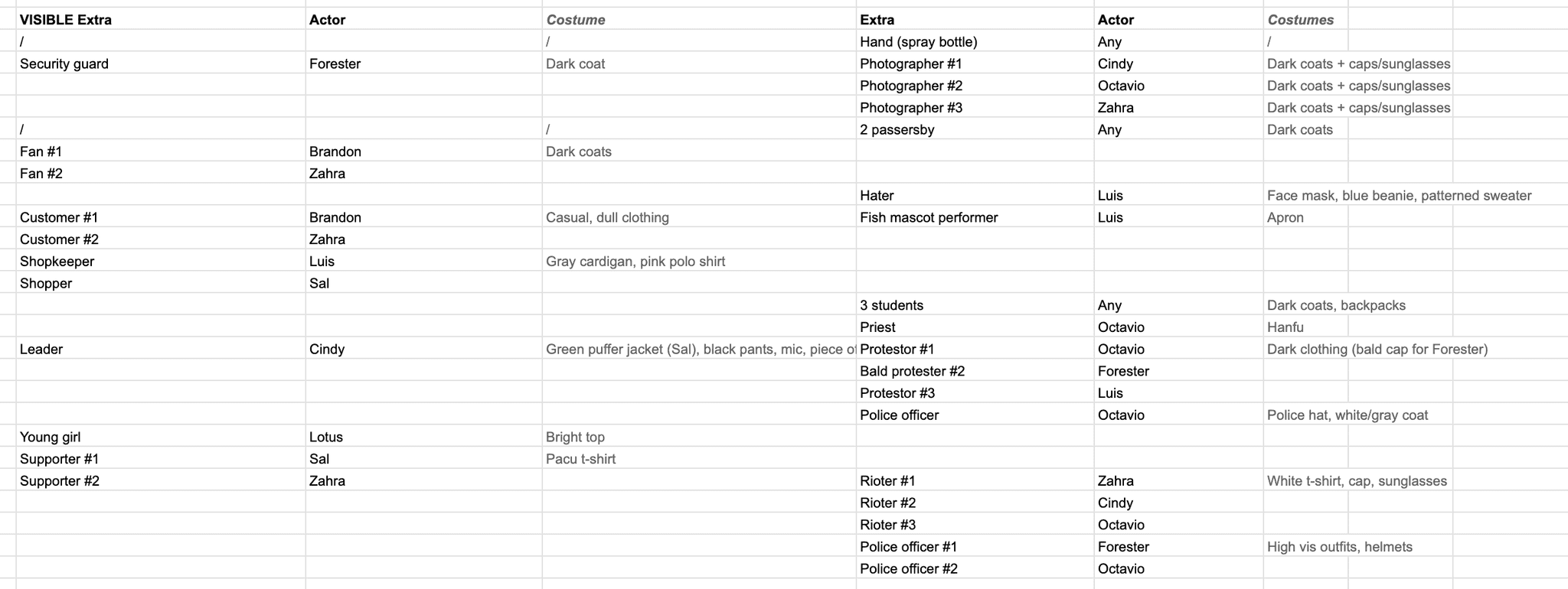 Assessing the costumes of the characters and deducing what is needed, with regards to what we know the actors already own