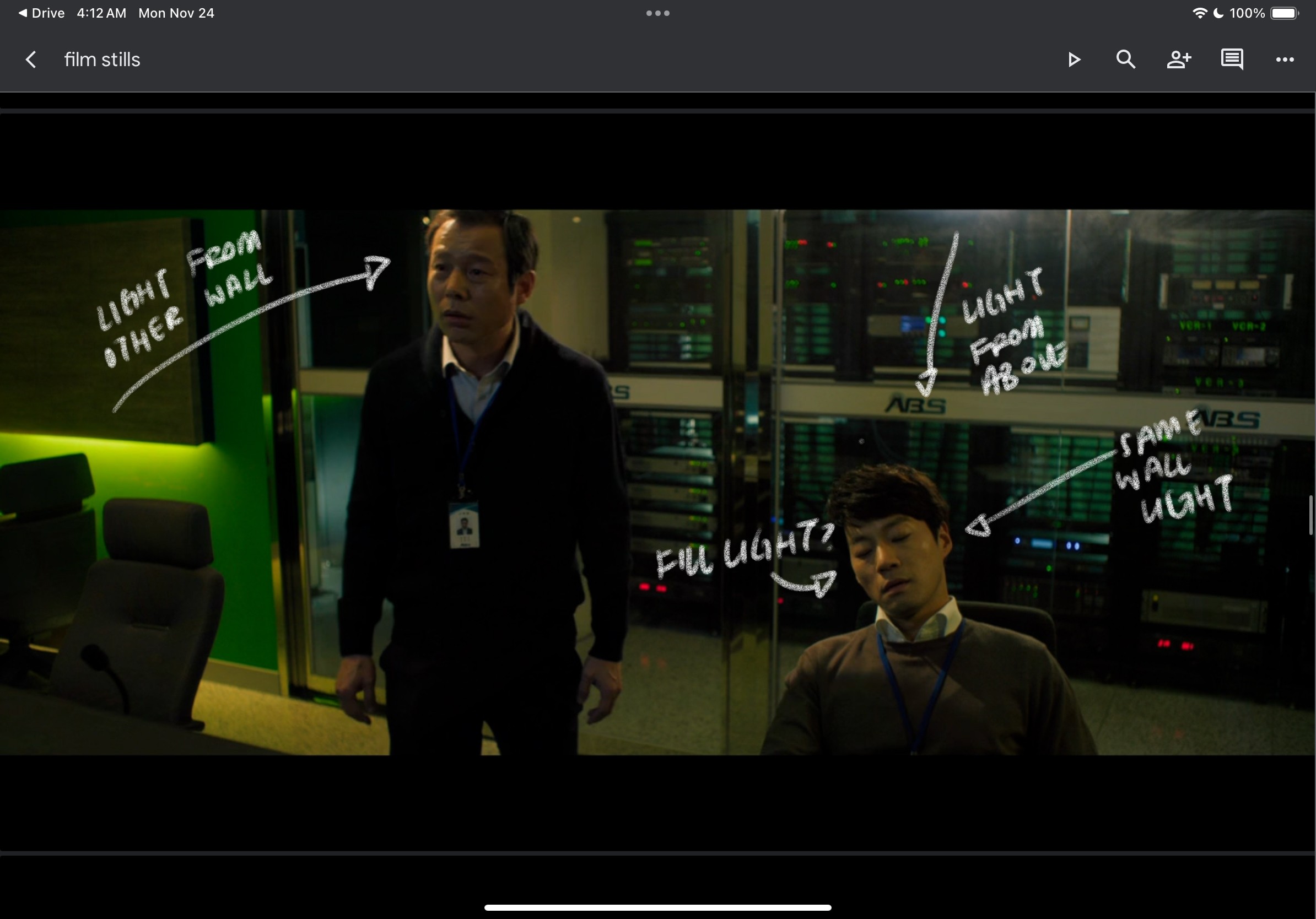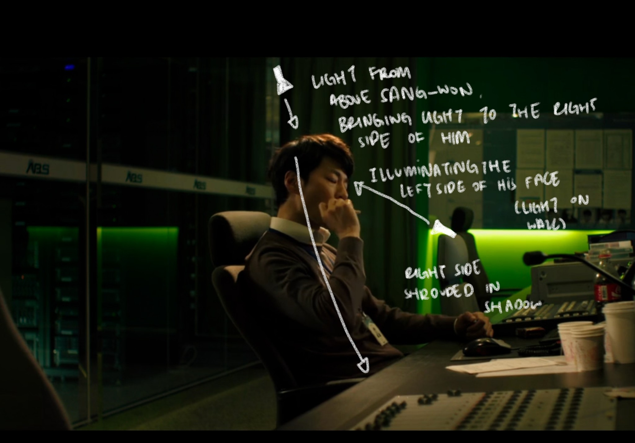 However, it appears as if there is another light coming from below Sang-won, on the other side of his face. It serves as a fill light, where it softens the shadows on his face.