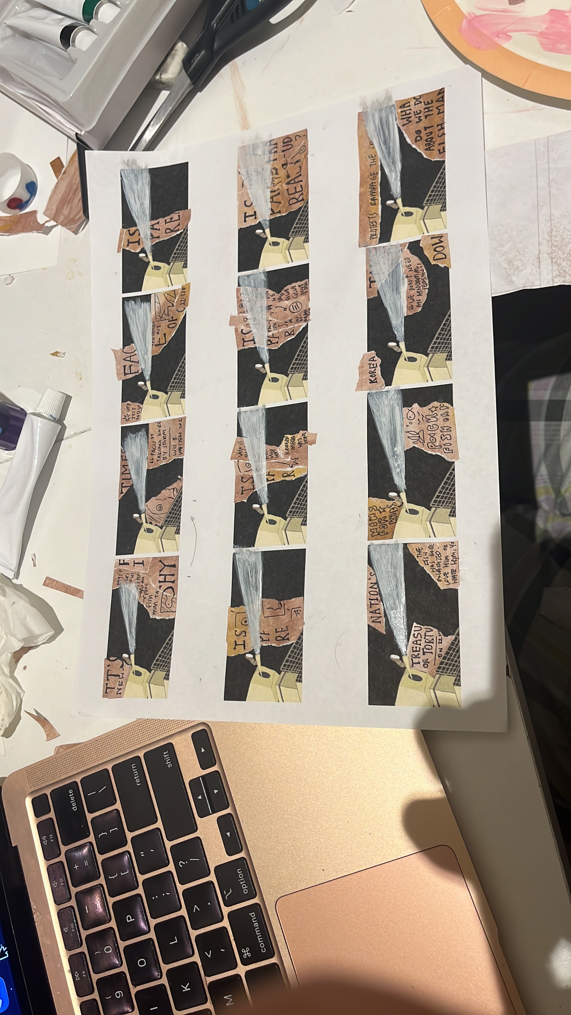 The newspaper cutouts really tie it together.
